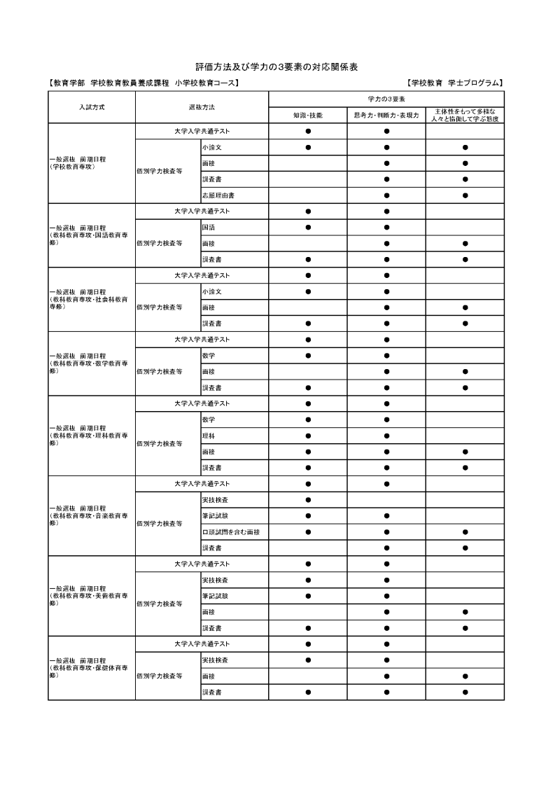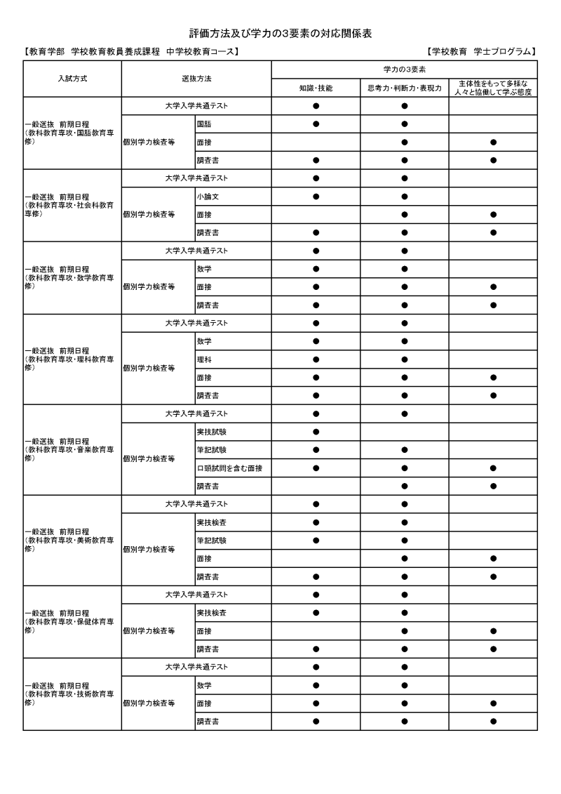 各学士教育プログラムにおける入学者受入れの方針(アドミッション・ポリシー)