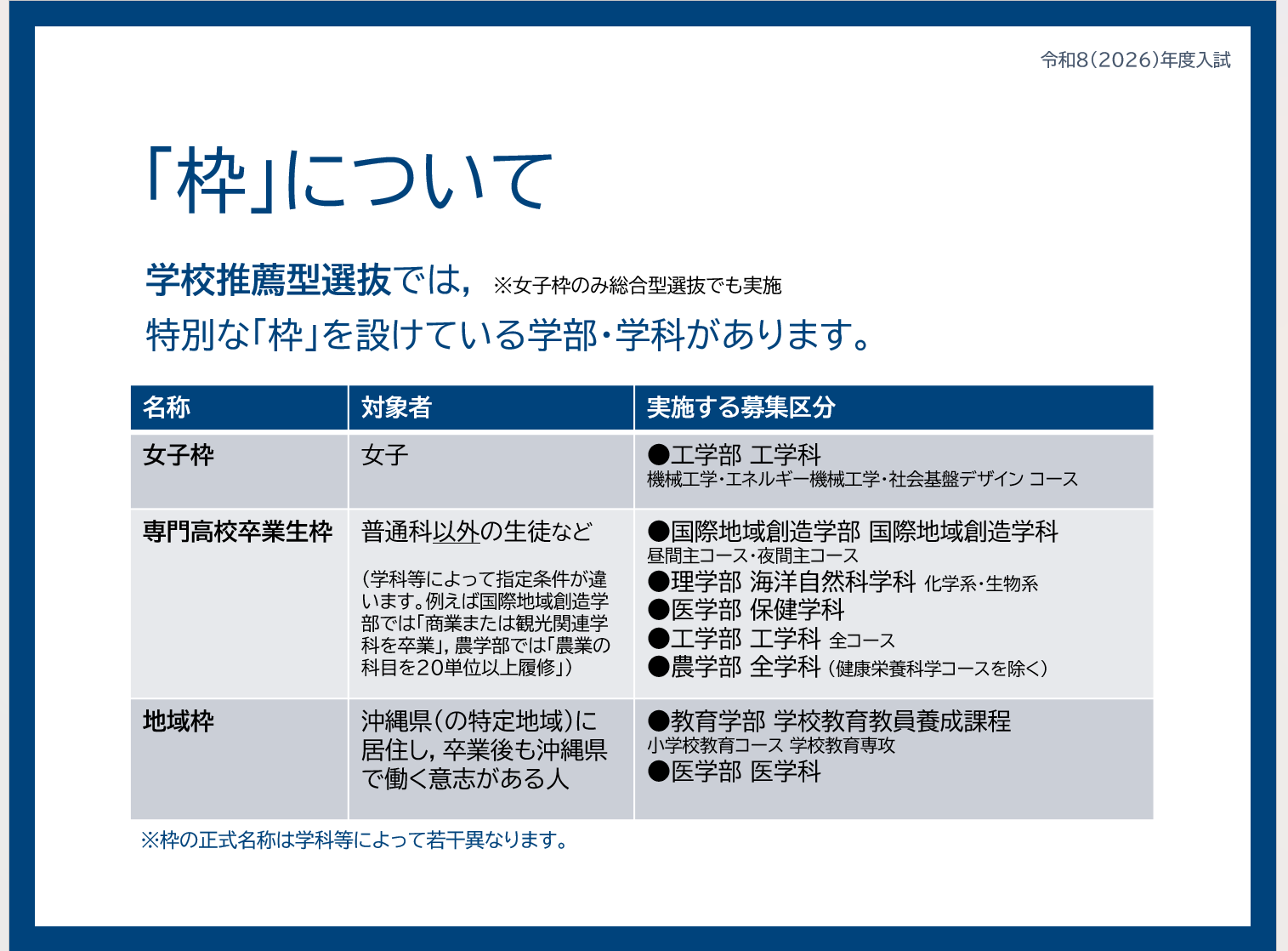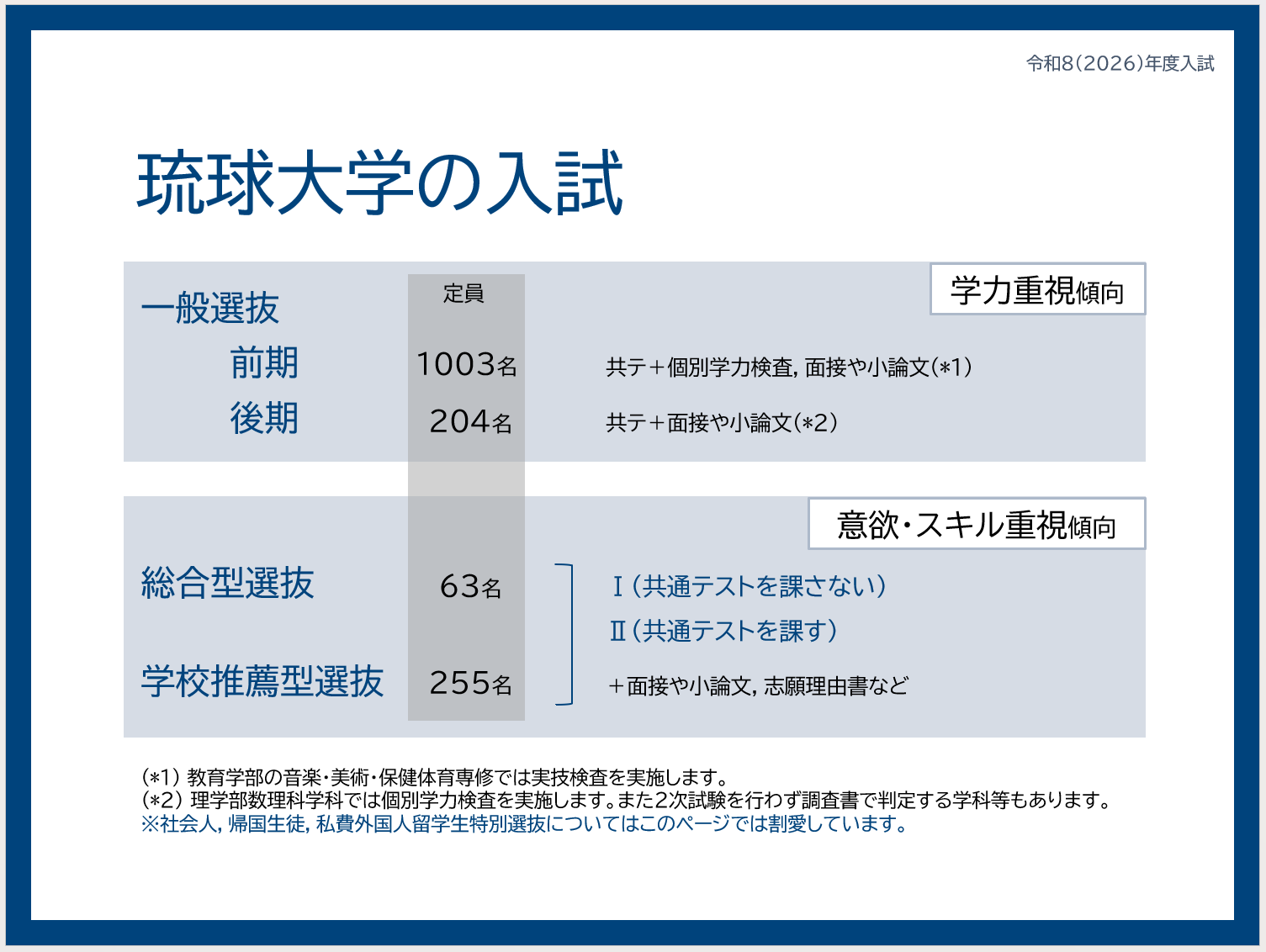 琉球大学で行われる学校推薦型選抜(推薦入試)について基本から説明します。