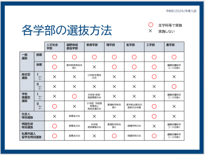 入試についての情報は、必ず最新の入学者選抜要項や学生募集要項にてご確認ください。