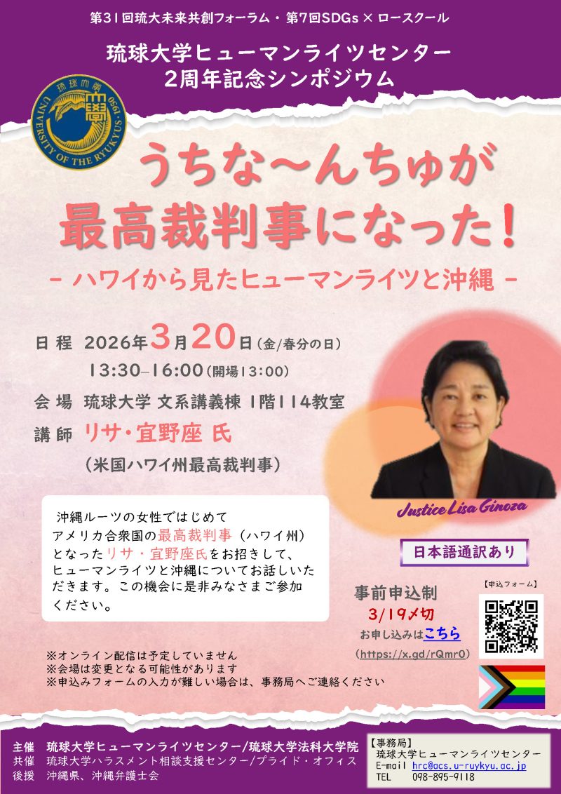主 催:琉球大学ヒューマンライツセンター/琉球大学法科大学院