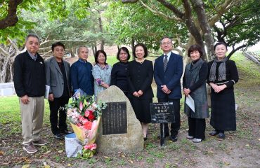(左から)大城理事、玉城主任、西田学長、仲本企画課長