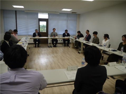 同懇談会では、「就職支援としてのキャリア教育及びインターンシップ事業について」をテーマに、大学4年間の学修を通じた学生自身の就職に対する考え方の変化、就職活動における経験等について懇談するとともに、本学のキャリア教育や就職支援に対する要望等について、活発な意見交換を行いました。