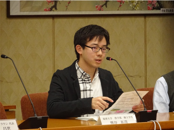 今年度は、「チャンプルースタディ 食べて学べるシマ野菜パン+スープセット」と、「石垣島のミルクと乳酸菌 のむヨーグルト」の発表を行いました。