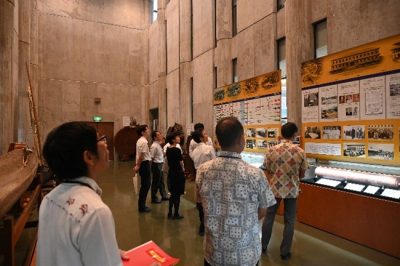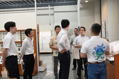 最後に博物館(風樹館)では、展示された貴重な資料について、辻 瑞樹館長、平良 渉助教が案内し、駆け足での説明となりましたが、終始和やかな雰囲気の中での視察となりました。