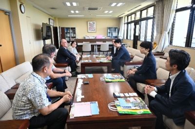 懇談では、オンラインによる教育について、グローバル展開の活用や教育効果等について意見交換を行い、また、本学からは本県の大学間連携の必要性を説明しました。