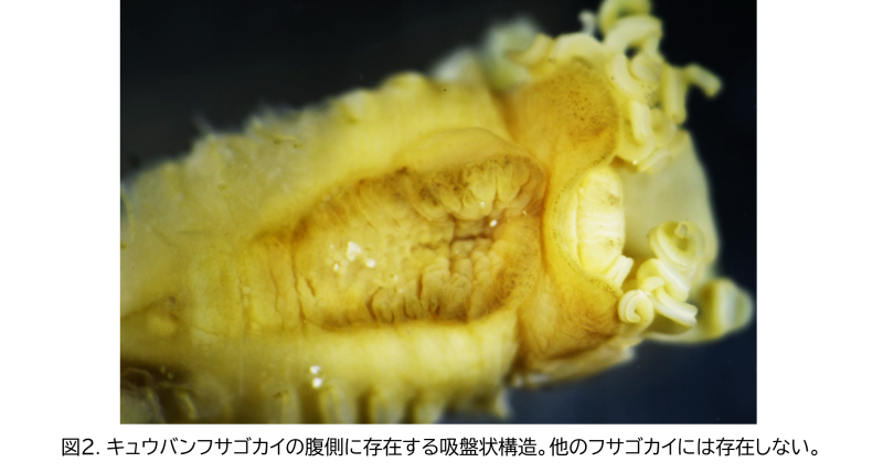 この吸盤のような器官は、フサゴカイ類ではこれまで知られていない新しい付着適応形質であり、進化の結果強い海流と岩盤のみの深海海山(かいざん)注1)環境という厳しい条件下で生活することができるようになったと考えられます。