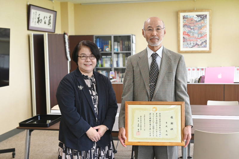 2025年10月31日(金)、学長室にて、吉武 晃様への感謝状贈呈式を執り行いました。