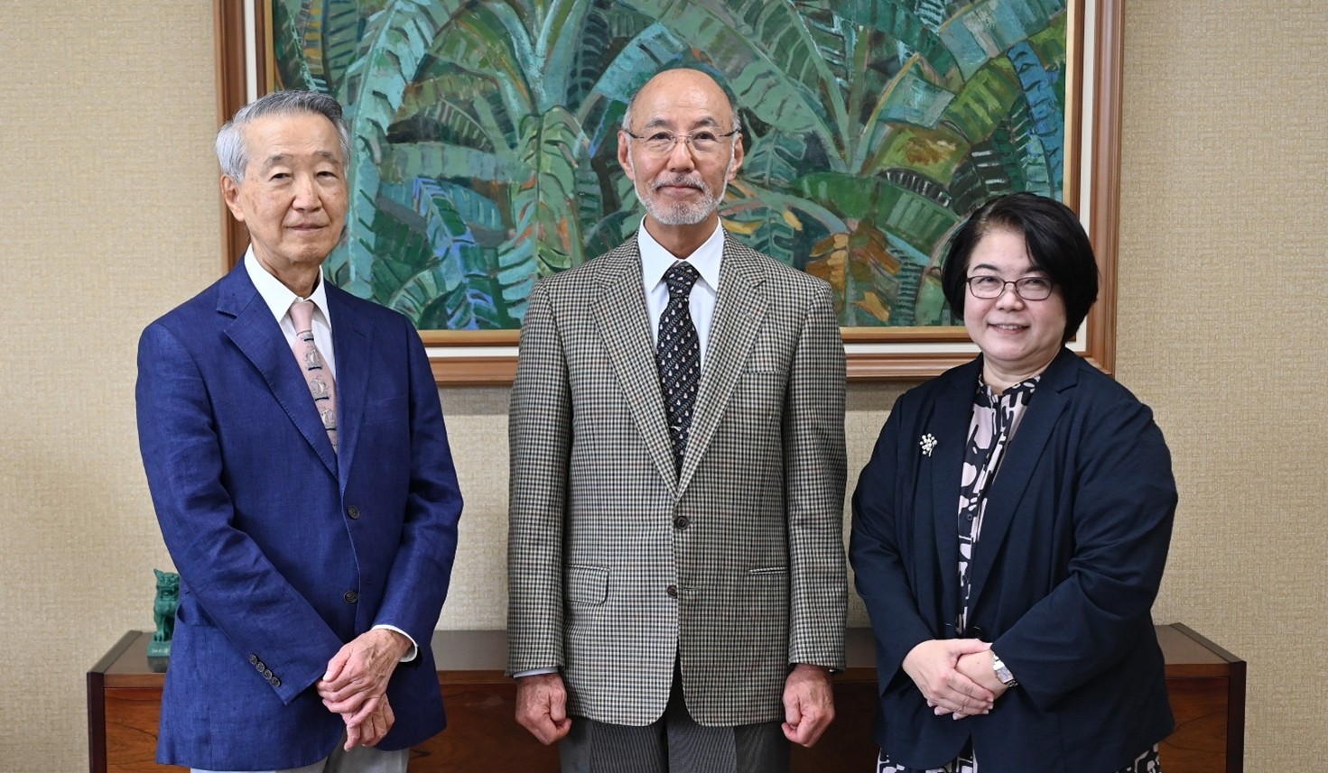 (左から)吉武 登様、吉武 晃様、喜納学長