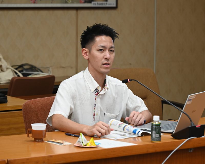 イベントの開催について呼びかける総合技術部フィールド 技術グループ 新垣技術長(左)と、屋良マネージャー(右)