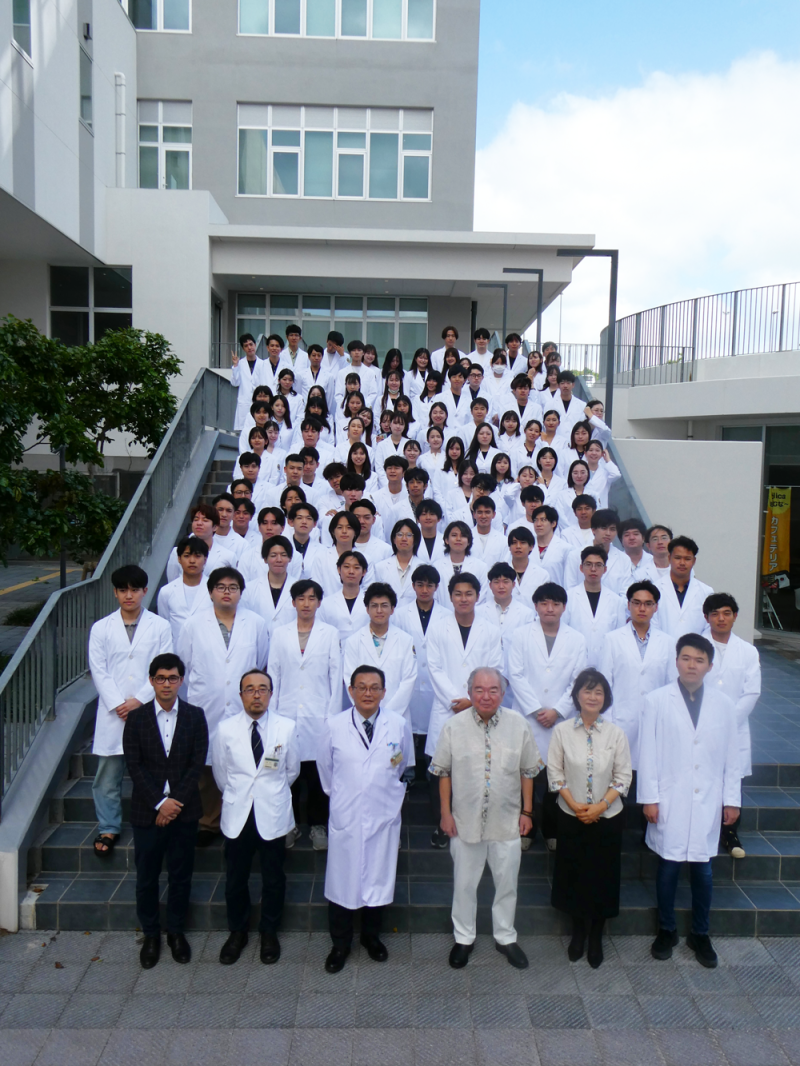 琉球大学医学部医学科では、沖縄県医師会より臨床実習に臨む4年生へ白衣の寄贈を受け、贈呈式を開催しました。