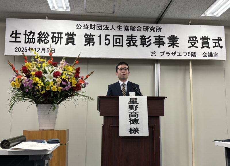 国際地域創造学部経済学プログラムの星野高徳教授(日本経済史)が、生協総研賞第15回表彰事業「研究賞」を受賞しました。表彰式、受賞講演会は、2025年12月5日に東京都千代田区主婦会館プラザエフで行われました。