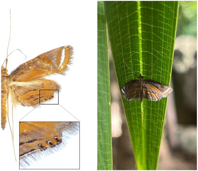 琉球大学 熱帯生物圏研究センター西表研究施設の和智 仲是(わち なかただ)助教は、八重山諸島ではこれまで与那国島でしか確認されていなかった、ミズメイガ類の一種・ミツクロモンミズメイガを、石垣島で初めて記録しました。