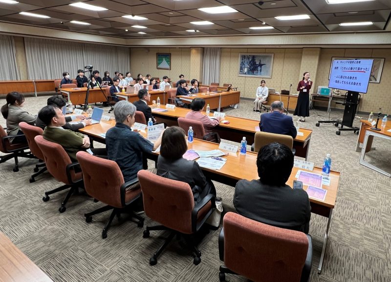 同発表会には、経済同友会インターンシップ推進協会から青木剛専務理事・事務局長を含めた3名の担当者を迎え、喜納育江学長、福治友英理事・副学長が出席したほか、過年度に参加したOB・OG学生も発表を見守りました。学生たちは、社会人や他大学生との交流で感じた自身の課題や強みを明確にし、自身のキャリアに関する目標やこれから挑戦したいことを発表しました。
