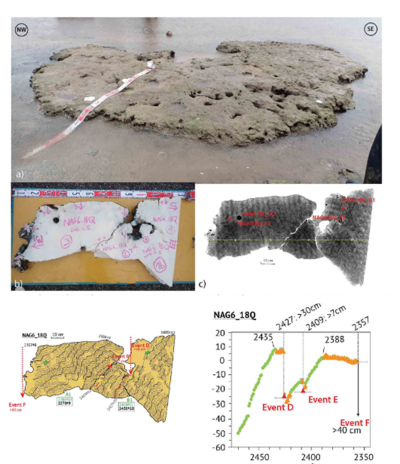 過去約5000年間の相対的海面変動と地殻隆起の履歴を復元し、地震断層モデルと組み合わせることで、巨大な沈み込み地震による急激な隆起が周期的に起きていたことを示しました。