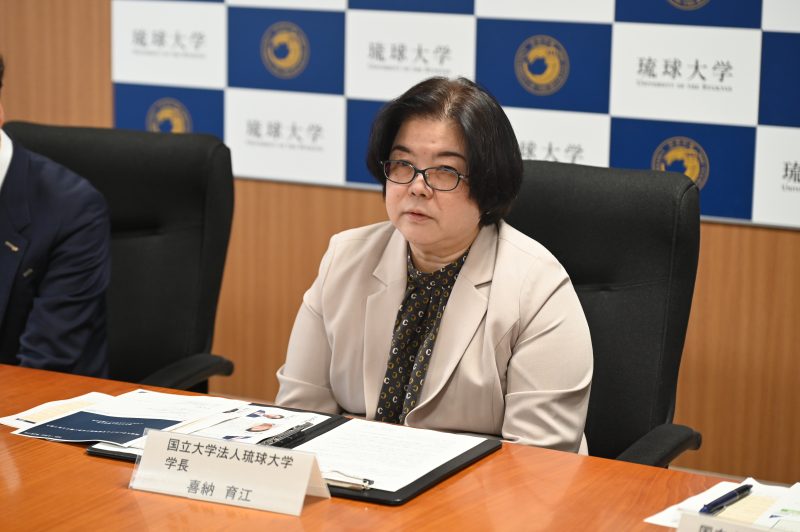 締結に向けて喜納学長、水野取締役副社長執行役員よりご挨拶をいただきました。