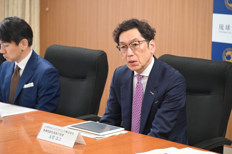 「八千代エンジニヤリング株式会社と琉球大学は、2019年から「キャンパスMaaS」の取組にて共同研究を進めてきましたが、今回の協定はその成果が、社会実装のフェーズに至った記念すべき日だと思っています。琉球大学のカーボンニュートラルの実現に向けた、コミュニティ社会のモデルの構築を通じて、渋滞の緩和をし、この成果を沖縄から発信していきたいと考えています。」