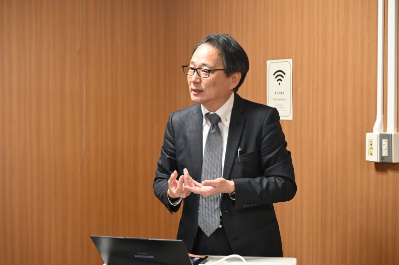 工学部の神谷教授、八千代エンジニヤリング株式会社の菅原プロジェクトリーダーより、協定締結に係る提携内容の詳細についてご説明をいただきました。