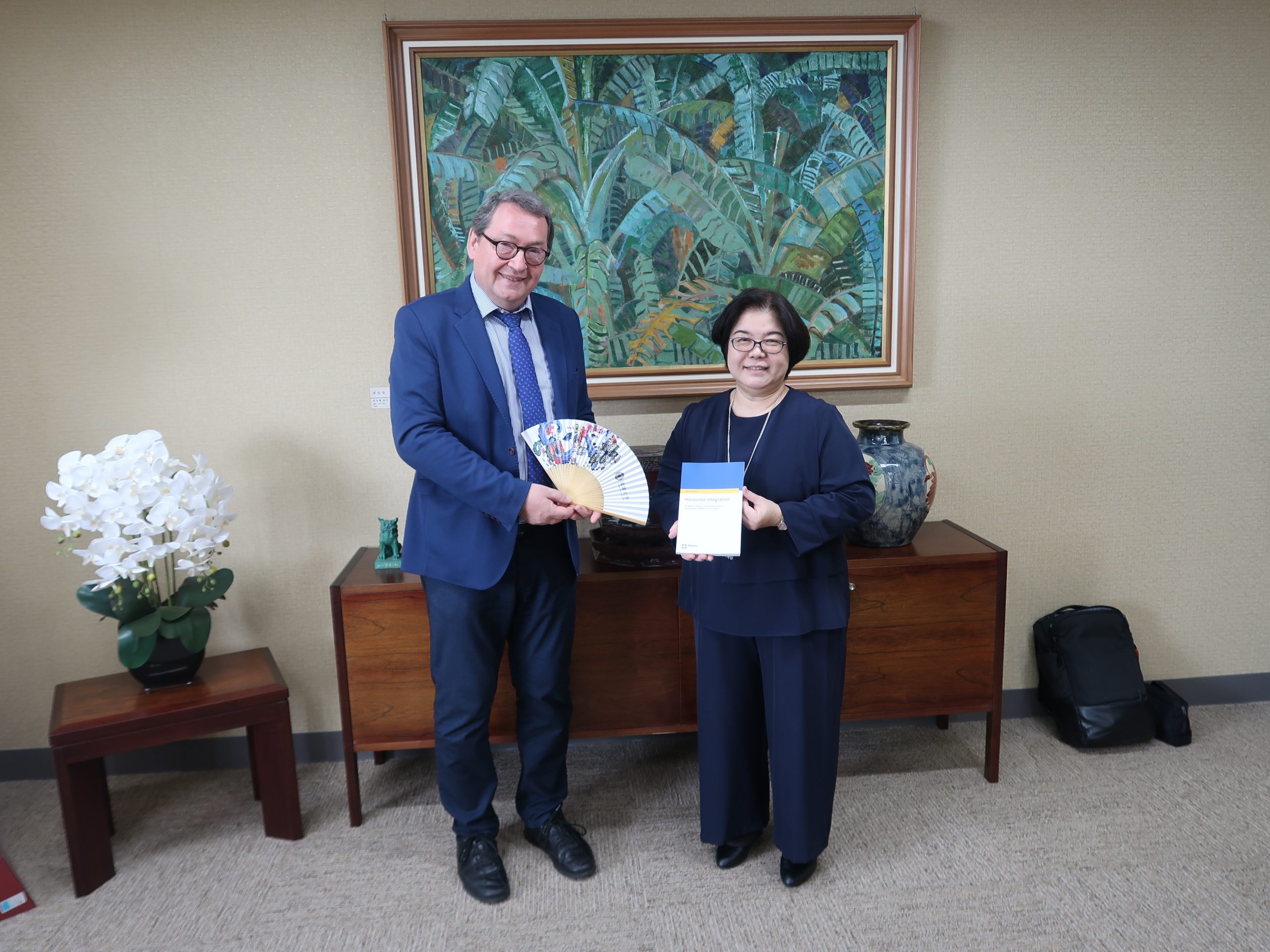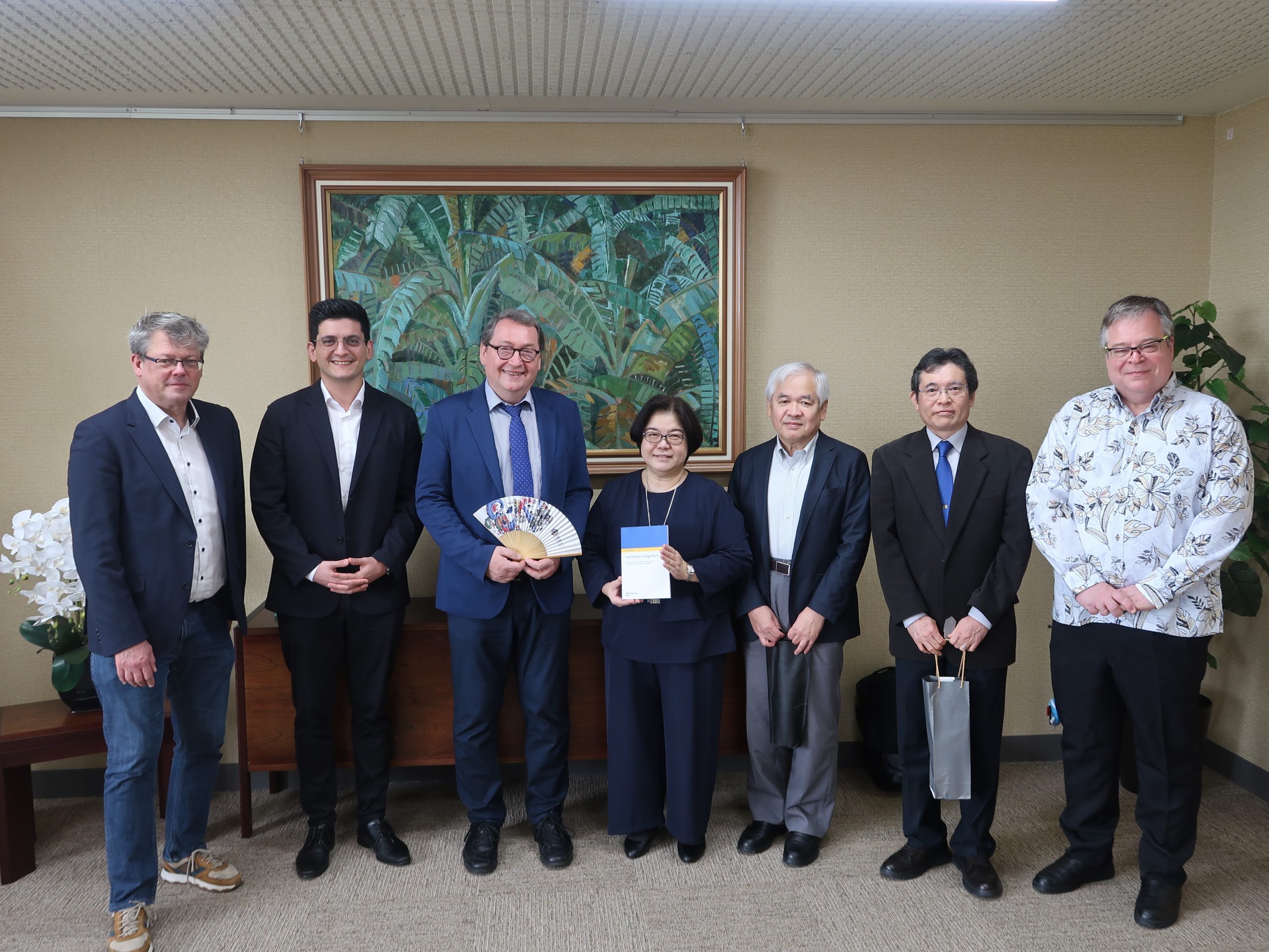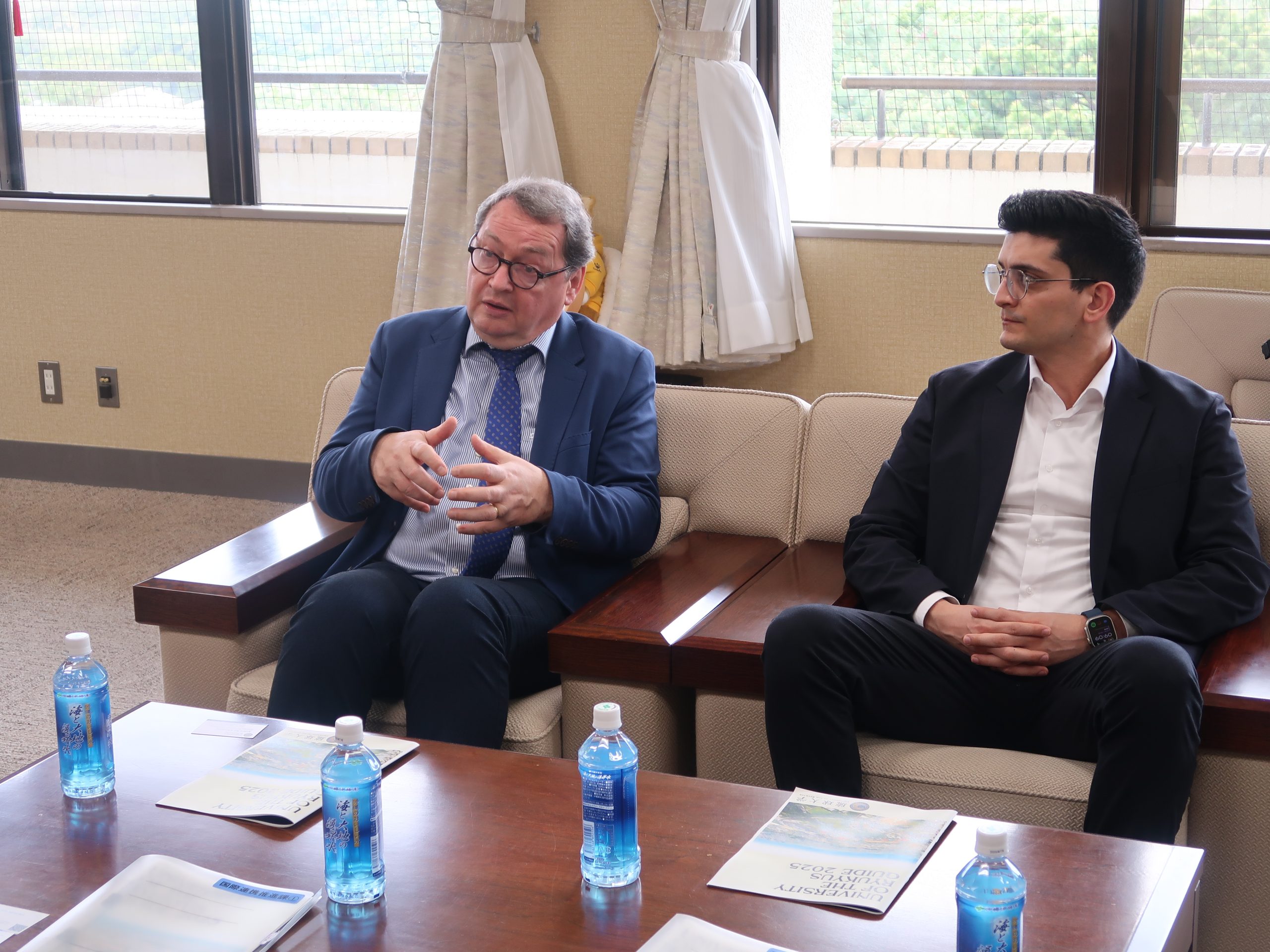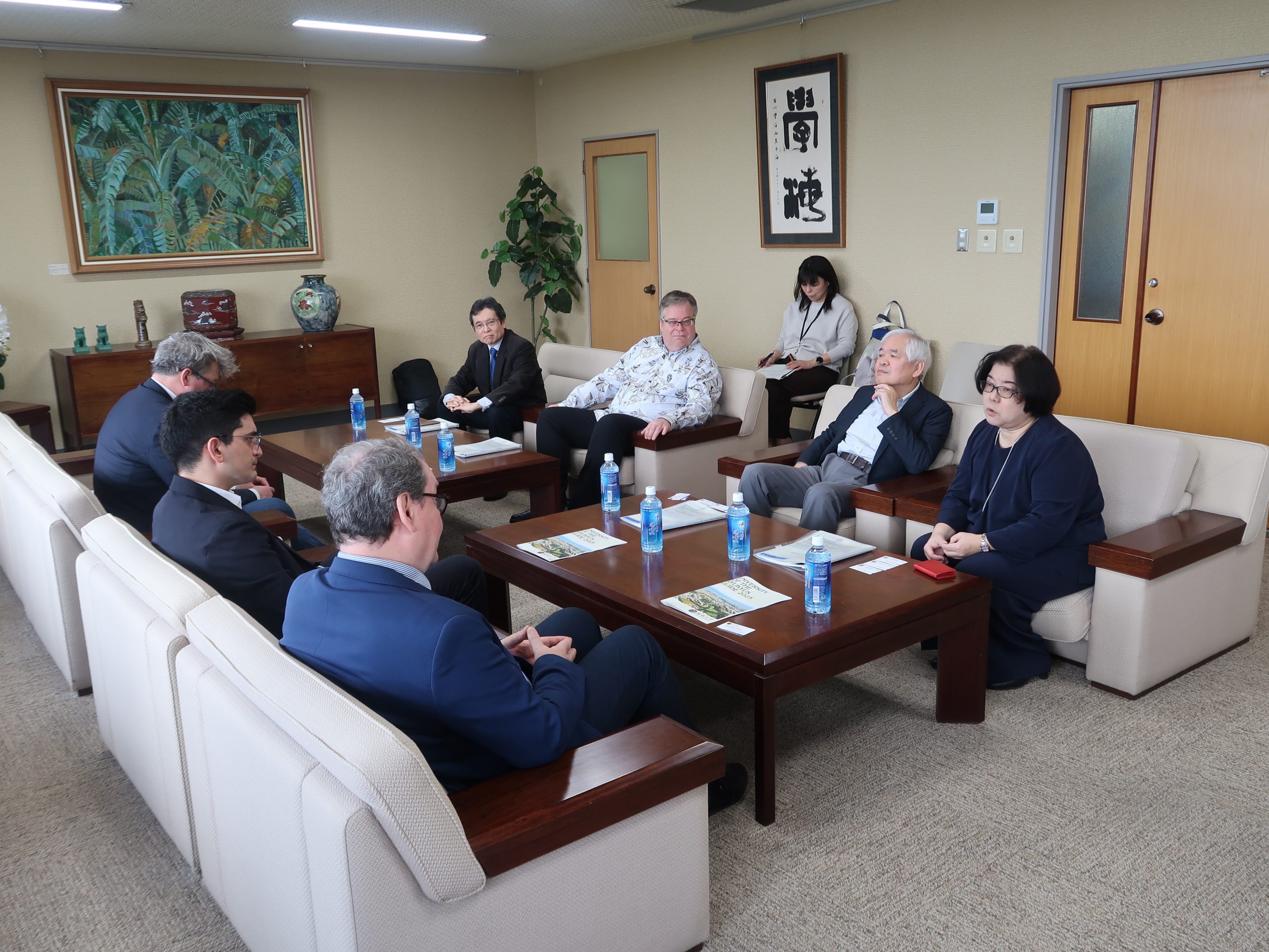 本学人文社会学部及び国際地域創造学部が2025年5月にケール公共政策大学との部局間交流協定を締結しており、ウェーバー教授らが軍跡地利用関連の研究プロジェクトを共同で実施してきました。本プロジェクトの一環で同大の教員・学生との交流を実施するにあたり、今回の表敬訪問が実現しました。
