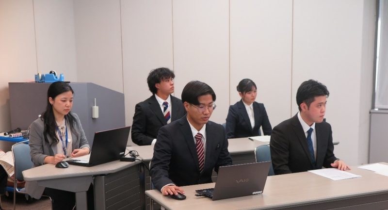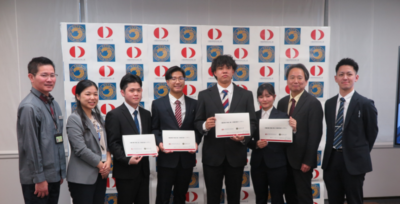 左から:平良 貴洋(沖縄振興開発金融公庫)・古堅 香織(同公庫)・渡慶次 諒(工学部3年)・名嘉 孝光(同3年)・