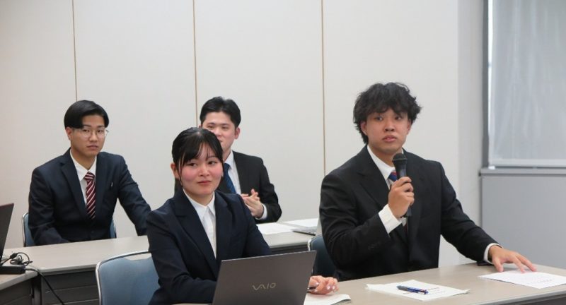 成果発表会には、研究に携わった工学部社会基盤デザインコースの学生4名も出席し、自身らの研究結果の発表や、研究結果を踏まえた提言を行いました。