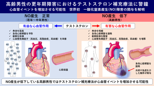 高齢男性の更年期障害におけるテストステロン補充療法に警鐘 心血管イベントを増加させる可能性 世界初 一酸化窒素産生障害の関与を解明 目標3:すべての人に健康と福祉を