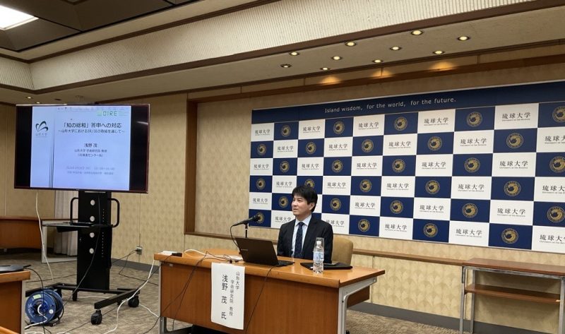 本研修では、山形大学 学術研究院 教授 浅野 茂 先生を講師としてお招きし、「『知の総和』答申への対応 ~山形大学におけるIR/IEの取組を通じて~」と題してご講演いただきました。